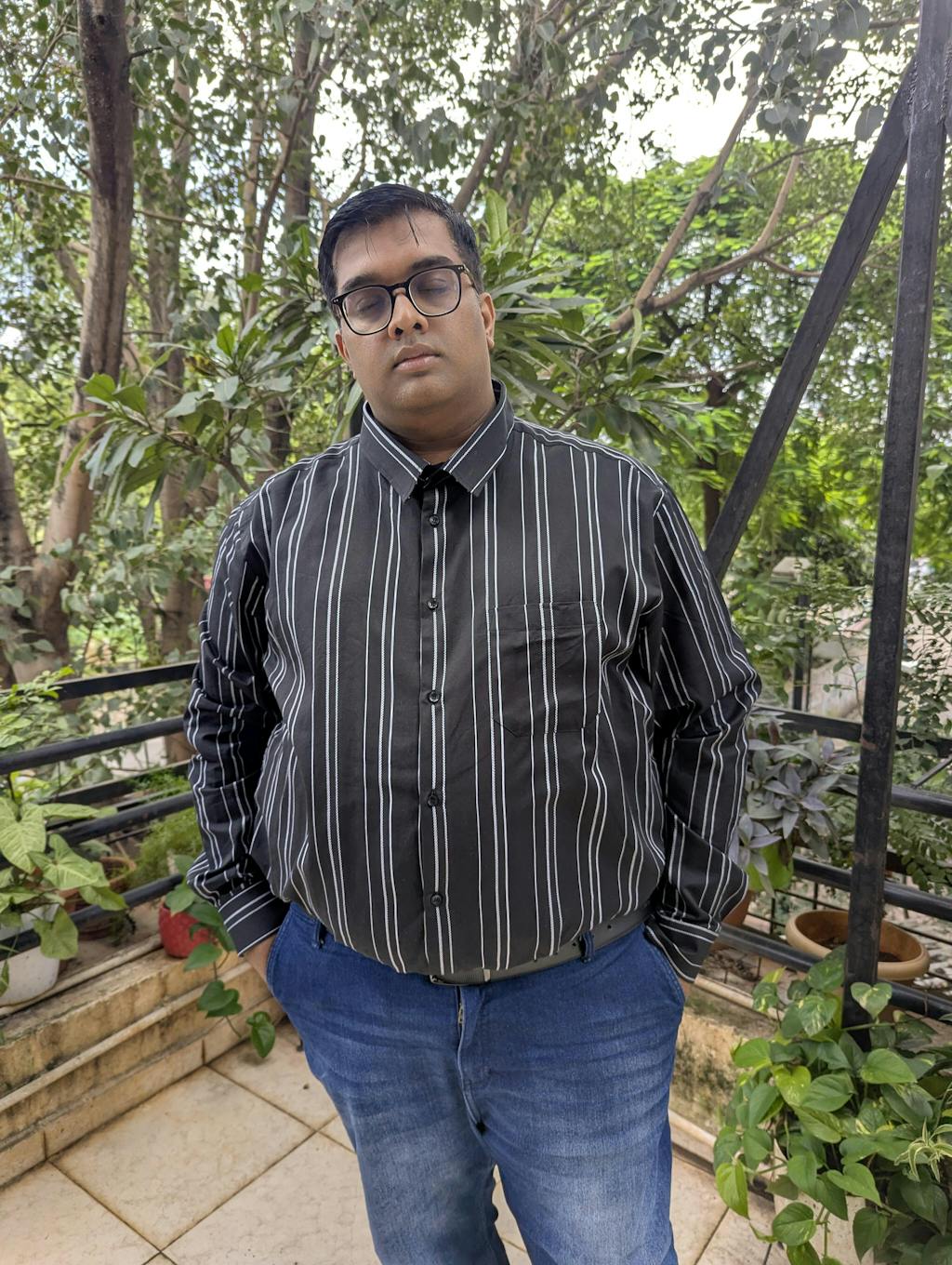 A timeless essential, this black striped shirt for men is crafted for both comfort and style. Made from 100% breathable premium cotton, it delivers a naturally soft feel and lasting durability. The slim fit cut ensures clean lines and a flattering silhouette, making it a versatile piece for every modern wardrobe.